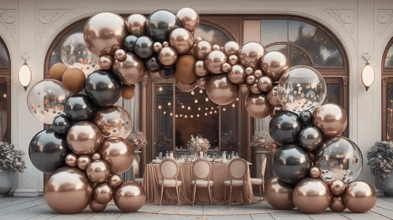 North Shore Balloon Décor offers a wide variety, including classic pastel arches, metallic-themed arches, custom monogram arches, and arches incorporating floral or LED elements.